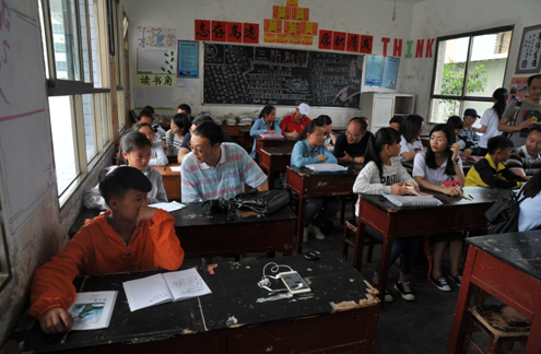 6月5日,在都勻市政府副市長韋恩勝、市教育局局長閔燕、共青團都勻市委書記劉流等的陪同下,廣信君達一行在翻越一個多小時的盤山公路后來到都勻市毛尖鎮江州中學、凌云小學,而在山區的孩子們從家中走到學校卻要花四、五個小時,路途的遙遠讓大家深刻體會到了山區孩子的艱難。