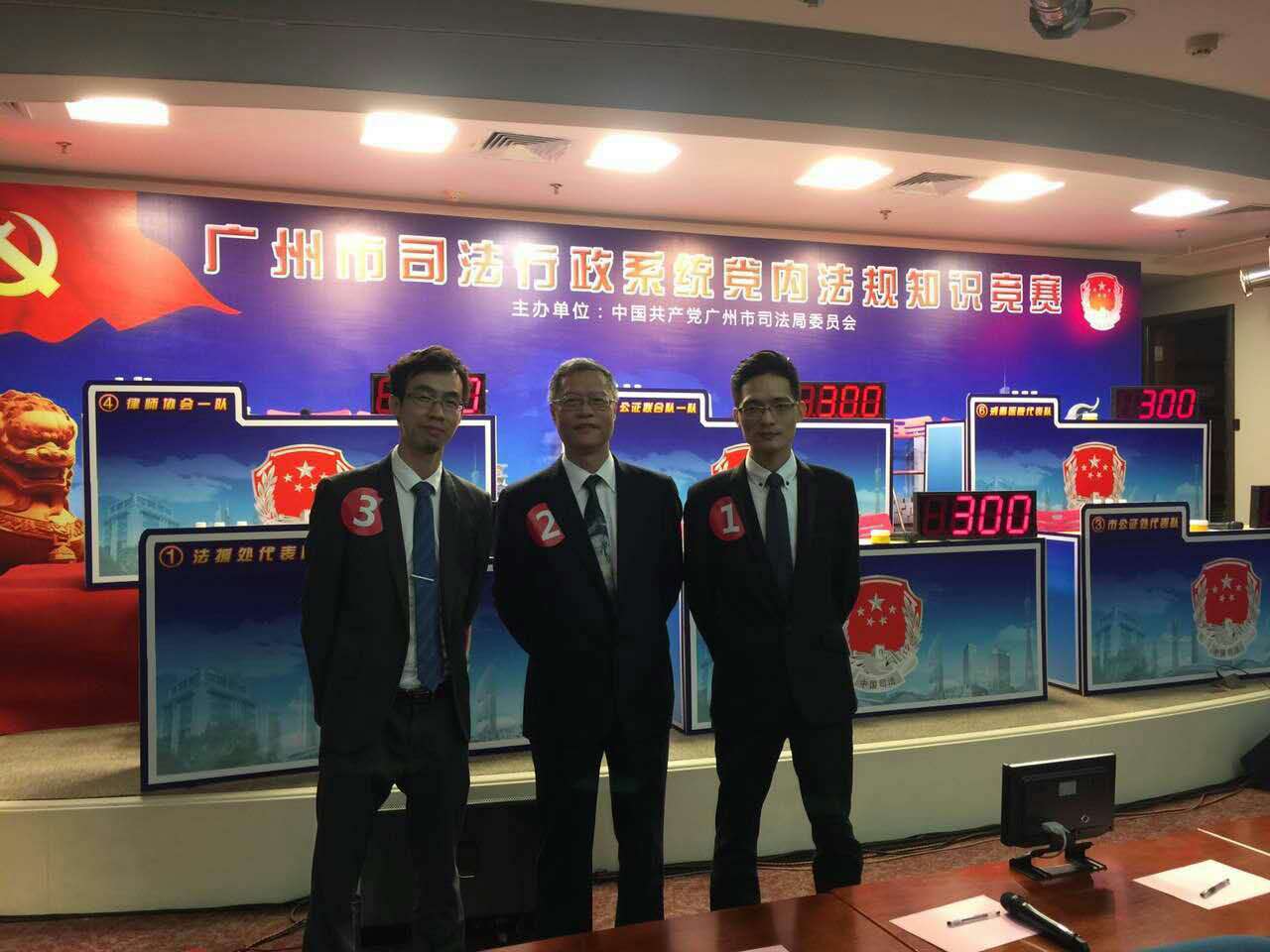為嚴格貫徹執行黨內法規,進一步加強全市司法行政系統紀律作風建設,增強系統全體黨員的黨規黨紀意識,廣州市司法局黨委于2016年5月31日在廣州市司法行政系統內,舉辦了一次黨內法規知識競賽。廣東廣信君達律師事務所高級合伙人、黨支部書記章勛律師帶領廣信君達團支部書記、隊員黃福軒律師和黃恒律師組成參賽隊,代表廣州市律師協會參與了本次比賽。