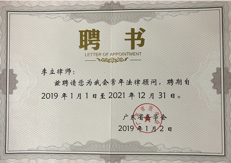 2019年1月3日上午,廣東省醫(yī)學(xué)會舉辦了法律顧問聘任儀式,廣東廣信君達律師事務(wù)所高級合伙人李立律師等被聘任為廣東省醫(yī)學(xué)會常年法律顧問。