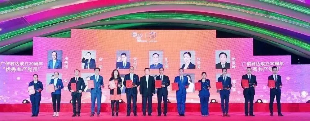 為表彰對律所創立發展做出突出貢獻的律師員工,廣信君達黨委及事務所決定,對入所滿10年的職員授予忠誠獎;另評選出30名優秀共產黨員和30名突出貢獻律師員工,向2名現仍在事務所執業的創始合伙人授予功勛獎。